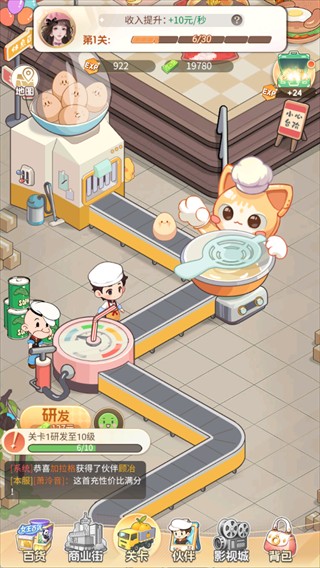 3、员工委派:解锁伙伴后,第一时间委派至快餐店,利用+60%收入加成快速提升营收;后续按店铺等级解锁新品推销、餐品制作等岗位,逐步完善员工体系。