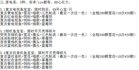 运气好可以合出蓝雷鱼、罗密欧等。此公式的好处是,小丑鱼产宝快,养成皇冠也快,可以顺便把任务里的皇冠鱼要求做了。刷合成等级可以说是最快的了。