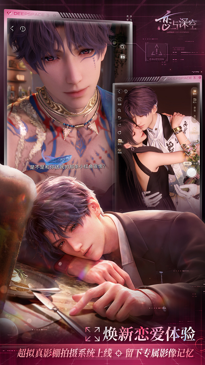 3D实时渲染代入式剧情,心动与冒险逐一在你眼前生动上演。独特的视角设计令你与他共度的重要时刻都能身临其境,更近距离感受他的呼吸与真实,打破现实与虚拟的界限,获得超拟真的沉浸式体验。