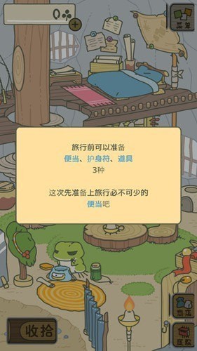 然后我们点击右下角的“小屋”返回房间里,在房间里点击左下角的“准备”按钮,开始为青蛙准备旅行的行李。