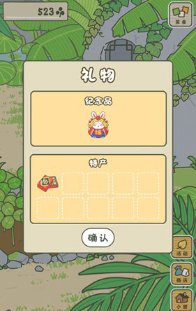 在旅行之前,我们要帮它准备旅行所需物品,主要是便当、护身符、道具等三种,当然其中最基础的是食物便当,购买食物需要三叶草才行,我们点击右下角的“庭院”按钮进入庭院。