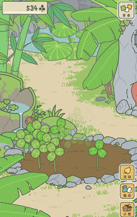 我们可以在庭院中看到地里种着很多三叶草,按住屏幕滑动这些三叶草即可收集起来。运气好还有几率收到四叶草,只是概率比较小。