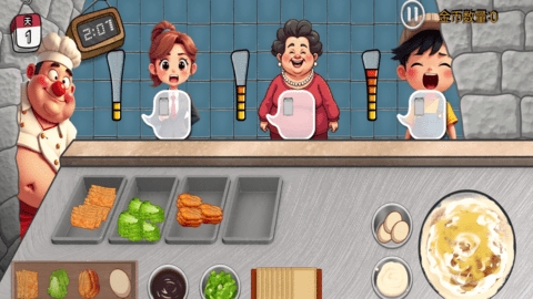 2、开始模拟经营店铺按照顾客的需求完成制作,在顾客耐心值消耗完之前完成订单任务,获取相应的金币,多个爆笑的方言口音带来不同的欢乐体验。
