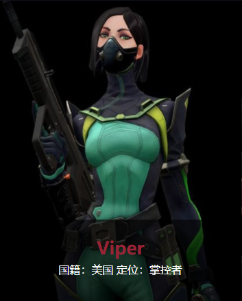 毒蛇擅于部署一系列的剧毒化学装置来掌控战场并削弱敌人的视野。她的猎物纵然在中毒后侥幸存活,也终究难逃她的阴谋诡计。