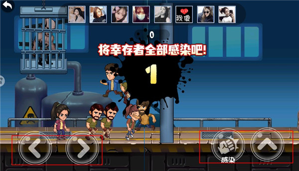 3、游戏开始我们要做的就是将幸存者全部感染,右下角和左下角的图标可以控制变异者。
