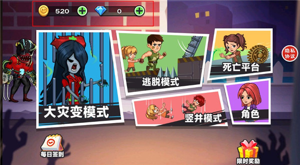6、点击进入逃脱模式,玩家可以免费领取游戏角色。