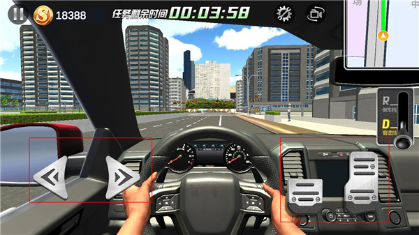 1、打开游戏后,可以看到游戏中的车辆都是连油门刹车都是真实还原的,档位仿也是按参照了自动挡的车型,并且只有前进以及倒车档位,如果想要倒车,则是需要先挂倒车档,然后踩住最右边的油门去完成