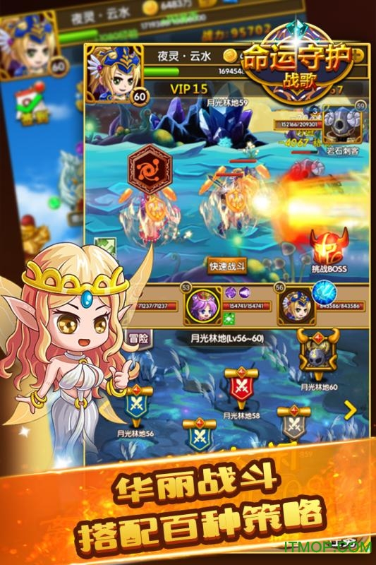 命运守护夜官方版是融合角色扮演与策略元素的手机游戏,玩家扮演守护者召唤培养英雄组建队伍抵御黑暗势力,其以精美画面、丰富剧情和多样玩法带玩家进入魔法与冒险奇幻世界,玩家能通过完成任务、挑战副本、参与竞技场等提升实力解锁英雄与技能,体验策略操作结合,且支持多人合作模式,可与好友组队挑战强大Boss享受团队协作乐趣