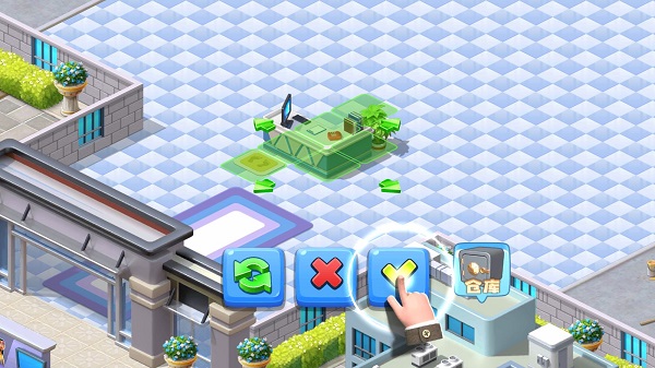 3、购买完成后,玩家可自由布局,通过拖动移动到合适位置,期间还可以通过旋转来更改朝向。