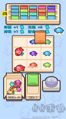 这款游戏里面通过派发乌龟相同颜色的去进行收回消除的玩法,让玩家体验简单的操作过程。