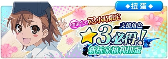 【活动内容】角色创建后,将会开启战斗角色★3 必得扭蛋和支援角色★3 必得扭蛋。