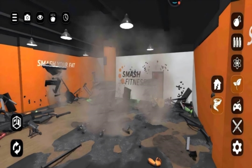1、进入失控玩家模拟器游戏进入首页,我们可看到,房间粉碎,、无广告、治理等选项