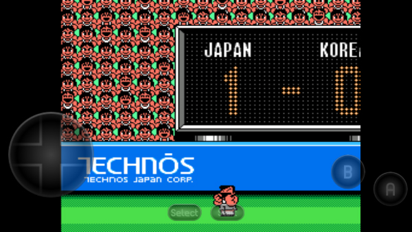 3、接下来讲解一下游戏技巧,所谓的技巧就是投机取巧的作弊,点击游戏下方中间暂停游戏,按照AAAB AAAB AAAAAAA的操作来,A是传球B是射门,依次输入完会有音效提示并且比分板上也提示,效果是我方球员解锁所有技能。