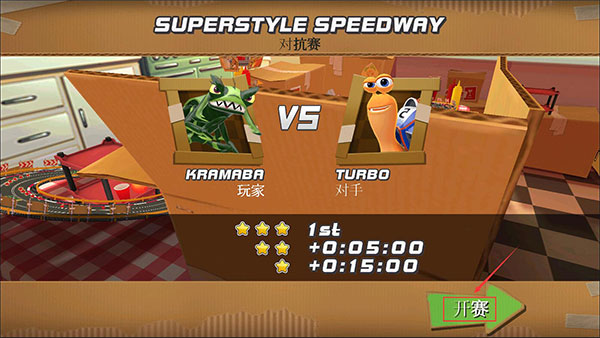 4、我们选择的是对抗赛,因此会和AI对手在同一条赛道上进行比赛,上面还显示了得星细则。