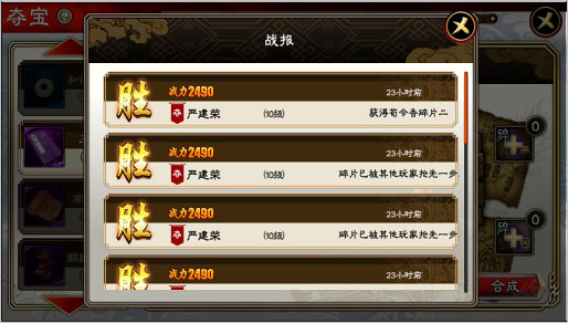 每一次抢夺或被抢夺宝物碎片,都会生成战报储存,以便供主公随时查阅,了解夺宝信息。