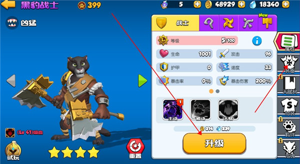 2.这类小动物也可以通过升级来提高性能,你可以消耗金币等资源来加强这些小动物。