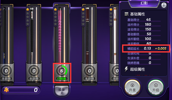 完成升星后,可以看到球杆的属性有了提升。