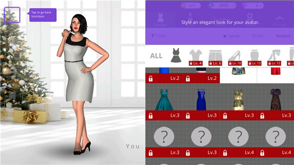 3 、当你的精品增长,你会学习更多和解锁的项目更多的装备类别 - 鞋,高跟鞋,皮包,钱包,连裤,连身服,彩妆,化妆品,配饰等。