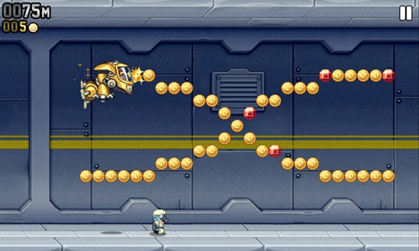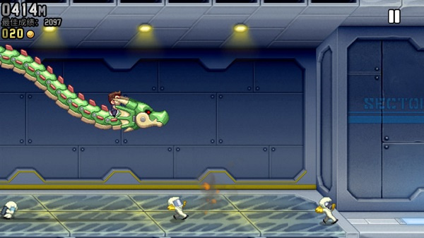 敌人对抗:游戏中不仅有静态的障碍物,还有动态的敌人。玩家需要灵活应对,利用喷气背包的机动性避开敌人的攻击,或者使用道具进行反击。击败敌人可以获得额外的分数和奖励。