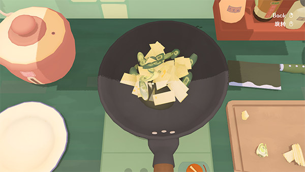 在这里玩家将通过和奶奶的日常对话来进行后续的做菜体验,奶奶会教你一步步的做好每道家常小菜,无论是从菜前准备的切片、清洗、腌制,还是炒、煎、煮和配置奶奶的调料都将由你一一制作。而且整体玩起来非常温馨舒适,会带给玩家一种回到家里的感觉,因为会有着奶奶的嘘寒问暖和细心教导,让玩家很容易沉浸在这温柔的环境当中无法自拔。
