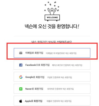1、打开浏览器,打开网址https://member.nexon.com/join/join.aspx进入账号注册页面。选择第一个使用邮箱进行注册。