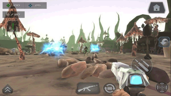 2、左边控制人物的移动,右边控制射击,需要收集出现在各个地方的资源,保护好自己消灭入侵的僵尸。
