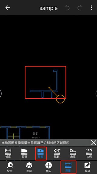 5、点击测量面积功能