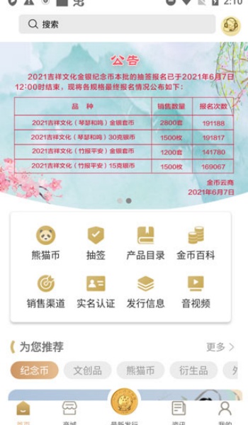 1、查阅推荐列表和专区,用户可从中查阅精品纪念币。