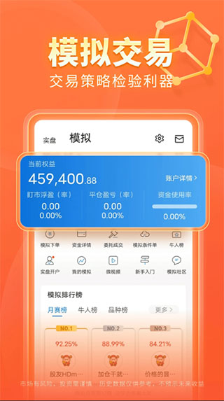 东方财富期货是东方财富出品的移动金融理财综合服务平台,主打一站式期货投资交易服务,可通过手机快速开户,行情实时更新且监控一目了然,具备智能下单功能让投资更极速,能不错过投资机会,此外还有模拟交易功能,为用户提供便捷、高效、多元的期货投资体验,满足投资者在期货市场的多样需求。