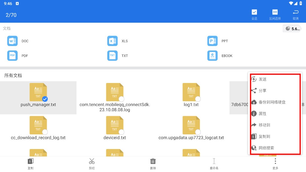 选中文件之后,就可以进行下方工具栏中对应的批量操作了,点击更多可以看到所有操作。