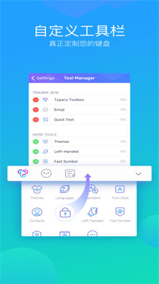 Typany输入法安卓版是一款支持智能翻译的输入法软件,该输入法拥有十余种输入法专项,能为外语学习者、留学生以及翻译工作者提供一条方便简洁的外语输入途径,让你从此不再为外语的输入而烦恼。同时,用户在使用它输入出来的单词不仅能够在线翻译,还可以自动保存最近输入内容,为用户带来最为贴心的输入体验。