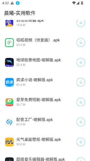 晨曦软件库APP是资源丰富且种类齐全的软件分享平台,涵盖生活实用、学习办公、影视小说等各类软件资源,资源清晰分类,用户可依据标签或关键词快速锁定所需资源以满足不同场景使用需求,同时该软件具备智能推荐算法,能根据用户搜索和浏览喜好推送更多相似内容,有效节省用户搜索筛选时间 。