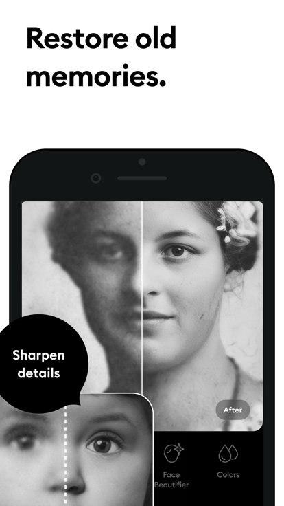 对于照片有破损、划痕、折痕、点或破坏等等造成的照片损坏,remini软件会保留原始照片的形状、细节、神态。精细化处理修复破损照片,让图片变清晰,让照片焕然一新