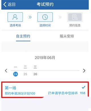 5、选中日期后查看申请人数和计划考试人数,没问题点击“预约”,预约后手机会收到验证码,将验证码填写后预约就成功了,显示“受理中”,在考试前3-5天会通知你成功或失败。