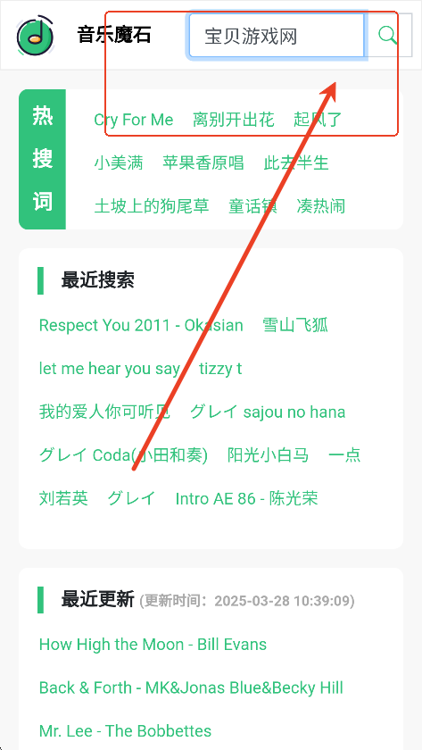 3、上方搜索框,还能够精准检索喜欢听的歌曲