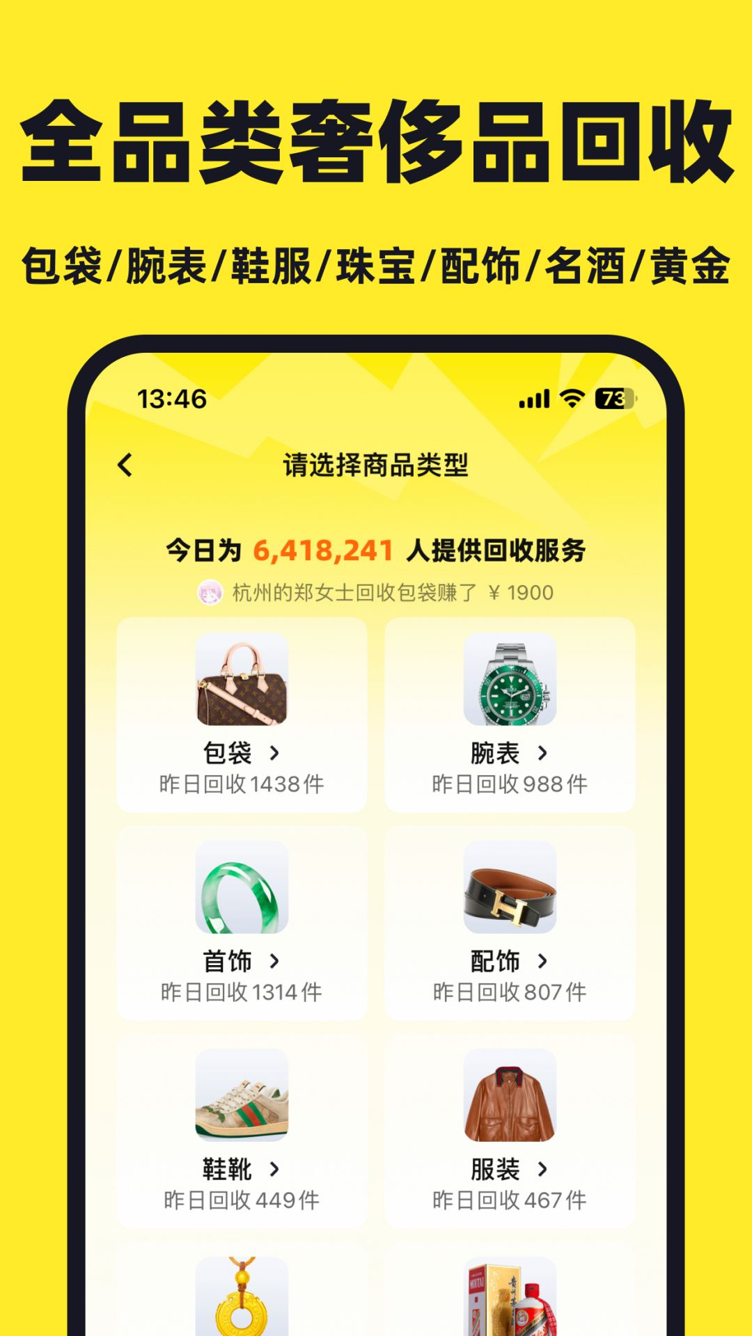 你可以在平台上找到涵盖奢侈品、品牌箱包、腕表、鞋服、珠宝、名酒等多种品类的回收服务。