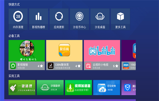 沙发管家tv版安卓版是专为智能电视机打造的电视应用市场,可帮助用户高效管理设备资源、优化使用体验,提供丰富娱乐应用,有超多适配电视端的应用,涵盖各种类型,用户能依喜好选择安装,使用起来十分流畅,是智能电视小助手,能满足追求极致观影体验的影视爱好者及需优化设备性能的普通用户需求,让智能电视功能更强大