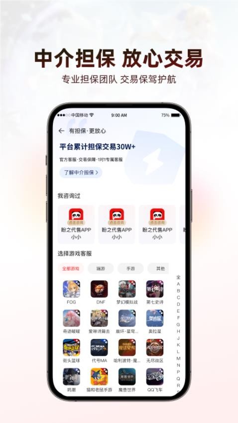 2、交易中介担保,中介担保大家线上买号服务,并提供全面交易保障。