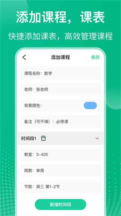 1、为用户提供便捷的课程表管理工具,帮助快速规划与调整日程。