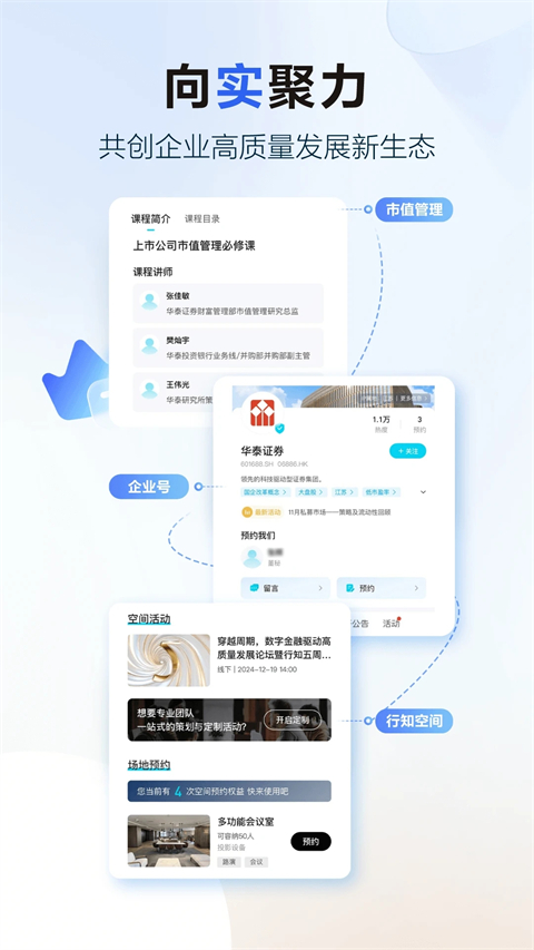 面向机构客户,行知综合展示华泰联合项目信息、业务动态,支持 IPO和可转债项目申报备案,并实现定增项目意向函提交及债券在线申购功能,可一键下载模板、拍照上传材料、即时查询结果;全面整合新股、新债、再融资发行信息,投行服务更简单、更快捷、更高效。面向企业客户,行知提供线上+线下的企业全生命周期服务,助力企业充分备战上市辅导考试,定制化页面展示企业IPO项目进程,及时提供热门行业深度解读,全面整合一级市场动态,一站式汇集投行服务代表案例,全程陪伴企业成长。