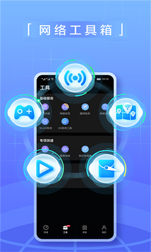 2、快速进行手机状况网络测速,诸多好用工具方便大家来进行使用。