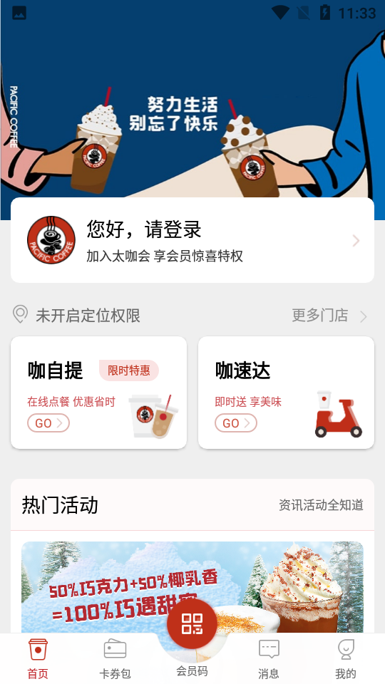 太平洋咖啡app是一款操作简单、功能强大的美食服务类应用,用户能借此软件购买所有太平洋咖啡,为会员卡会员和APP用户带来轻松便捷的消费体验并提供丰富多彩的文化和生活信息,使用该软件可解决诸多麻烦,想去太平洋咖啡品尝时能直接在线预约、付款,用户无需携带会员卡,用手机就能轻松搞定一切
